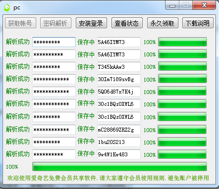 艺登免费爱奇艺会员分享是一款非常好用的奇艺视频vip账号分享和密码解析的软件,该软件小巧轻便,无需安装就可以帮助用户获取大量的爱奇艺会员账号和密码,该软件还支持安卓端、苹果和ipad端爱奇艺会员账号密码获取,欢迎有需要的朋友前来天空下载使用!