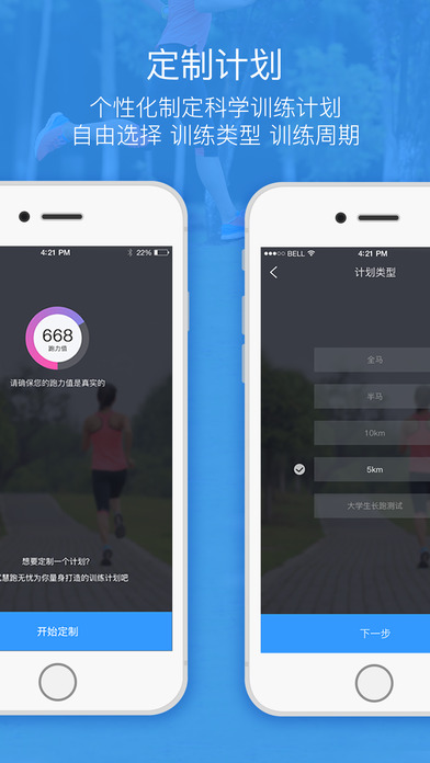 定制训练计划,全马、半马、10公里、5公里,可以自己选择训练周期!