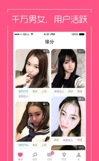 来约我吧软件是一款专为同城附近单身男女打造的情感交流平台,令孤单的你,最快的迎来一次次浪漫的约会。在偌大的城市,你压力山大,身体已经无法支撑压抑的精神世界。在慢慢长夜,你孤枕难眠,心中苦闷无法诉说。而你是否想过,在你身边,就有这样一个TA,你们本该相遇,却因为一系列原因,不曾相识,不曾相知。而这个TA,与你只差一款APP的距离。你不经意的打开“来约我吧”,恍然大悟,TA就在这里,不远不近,不离不弃,TA不是彼岸花,却是可以聊天约会带给你心灵安慰的有缘人。
