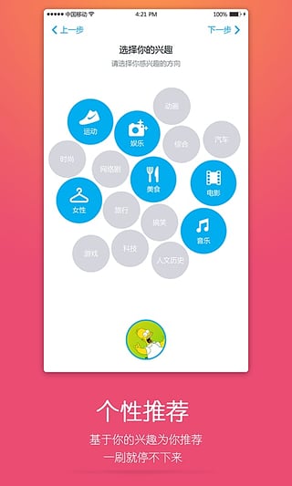 不知道看什么怎么办?看点视频会基于你选择的兴趣和关键词,做个性化的视频推荐。你什么都不用做,就能等着感兴趣的视频自己送上门来。
