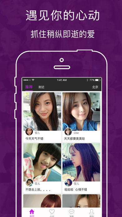根据兴趣爱好,个性特征、同城等多维度精确匹配,帮你快速匹配满意的对象。