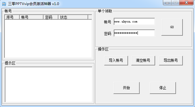三零PPTV会员激活工具是一款利用官方API借口免费为用户激活PPTV会员账号的工具,无须获取别人vip账号,安全不封号,操作简单实用,有需要的用户可以来天空网站下载使用。