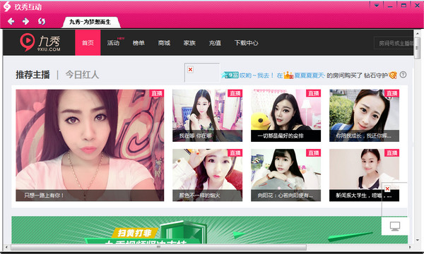 九秀美女直播官方版这是一款视频播放桌客户端,不需要过多的操作,也不需要浏览器,使用客户端直播观看更加流畅不卡机,还在等什么,快来下载体验吧!