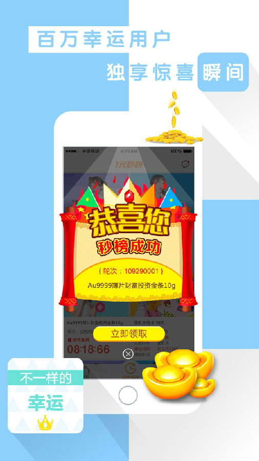 【独创玩法】直播玩法不再单调,撩主播同时还能1元买黄金、购物卡等商品,感受全新夺宝体验。