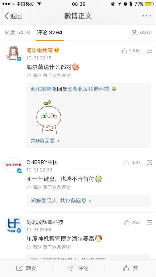 然而,同样作为国民品牌的海尔集团表示不服,很快海尔官方微信便给出了这样的回复→_→