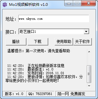 Mo1vip视频解析软件是一款视频地址解析应用,用户可以使用Mo1vip视频解析软件解析爱奇艺、乐视、优酷、土豆、芒果TV等各大网站视频地址,非常强大,有需要的用户可以下载。
