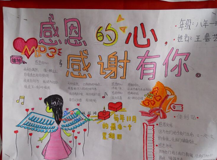 2016年11.24就是咱们的感恩节了,各位小伙伴在这个感恩节准备怎么感谢祖国、老师、父母呢,让咱们来一起做一份精美的手抄报给自己感恩的人吧,他们一定会为你的作品高兴的。