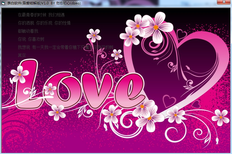 不清楚要怎么写表白文字,源码发上来,有需要的就自己改改!没VB软件的可以去下载一个精简版。