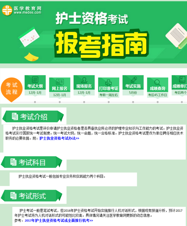 2017年护士考试大纲尚未公布,但是每年大纲变化内容有限,大家可以先参考2016年护士考试大纲进行复习。医学教育网会在2017护士考试大纲公布后,及时更新内容,以便于大家及时查看。