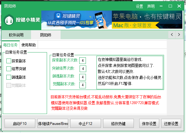 阴阳师按键精灵脚本是一款阴阳师手游挂机辅助应用软件,阴阳师按键精灵脚本具有探索副本、结界图片、御魂副本、觉醒副本等强大挂机功能,有需要的用户可以下载使用。