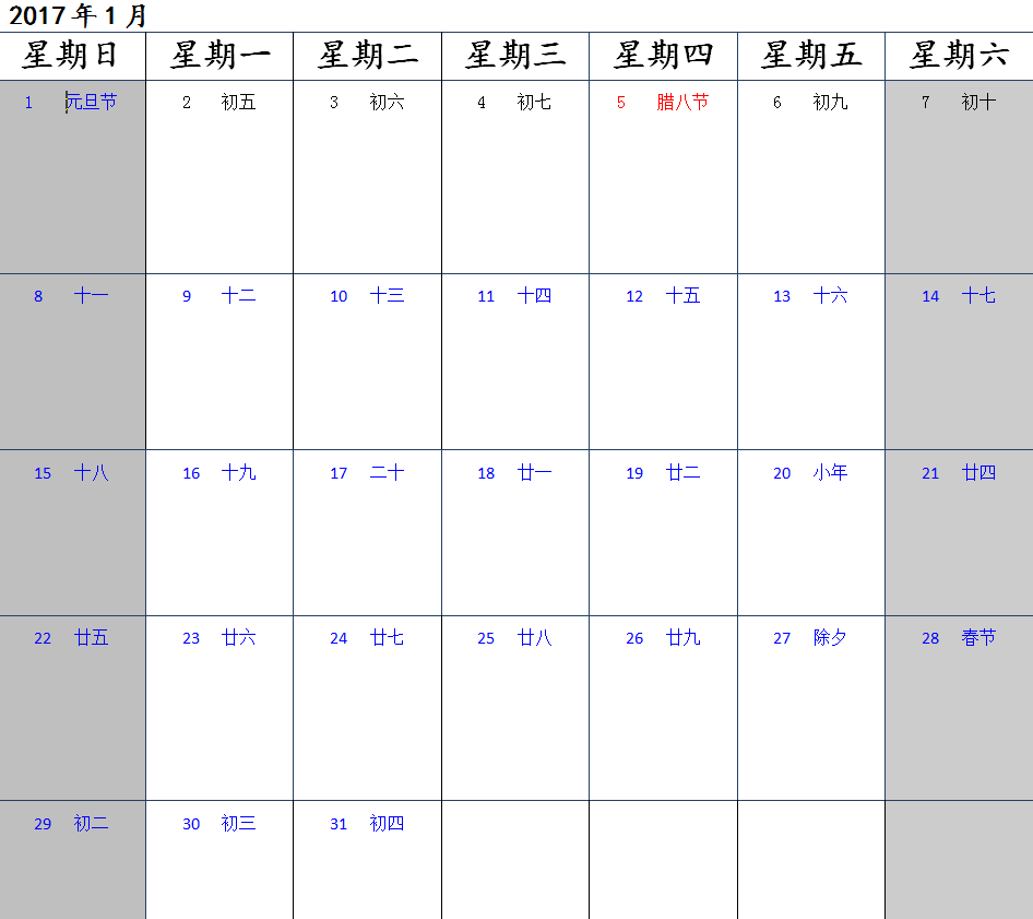 2017年日历记事本( 一月一张)是由天空为大家收集整理的2017年最新版日历记事本软件下载,有需要的用户只需点击就可以免费下载了,用户还可以根据自己的喜好来调整字体和方框空格的颜色哦,欢迎下载使用!