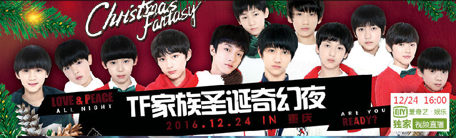 TF家族将在2016年展开圣诞奇幻夜,想必很多TFBOY的粉丝们已经期待已久了吧,今天小编给大家带来的是TF家族圣诞奇幻夜视频和圣诞夜直播地址,敬请期待。