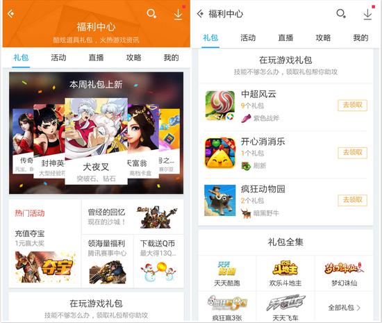 在福利中心,玩家可看到游戏福利“遍布满地”,“本周礼包”、“充值夺宝”、“礼包全集”等收集了各类型手游优惠,包括《疯狂动物园》《穿越火线》《梦幻诛仙》等热门手游大礼包,玩家可根据自己的爱好下载领取。