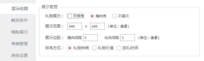 1.礼物展示有三种:列表秀(竖向排列),横向秀(横向排列),不展示