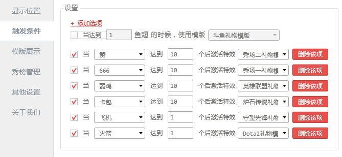 点击【添加选项】,并选择要展示的礼物,数量值以及展示模版。注意哦,可以添加多项哦,如图:
