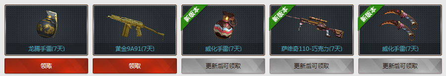 1. 为了避免版本问题导致发送武器失败,新版本的武器试用的武器将在所有大区更新完毕后才开启领取;