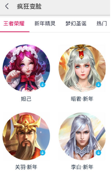 2、选择疯狂变脸,打开的就是王者荣耀的p图界面