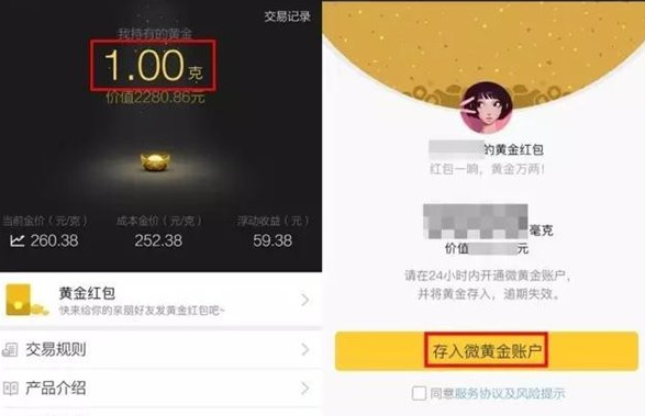 我们也可以在微信群里发红包,基于风险控制及消费者权益保护的相关要求,“黄金红包”采取了一个不超过1克的限制。