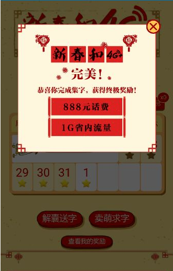 贵州移动新春和4g集字活动app是一款专门为贵州移动用户打造的福利赢话费活动应用软件,此次活动将有888元的话费大奖和1GB省内流量,用户只需集齐就有机会获得两份大礼,欢迎有需要的朋友前来天空下载使用!