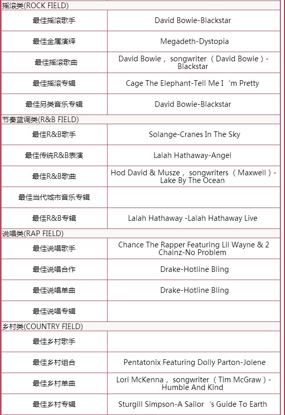 第59届格莱美音乐奖提名名单出炉,Beyonce九项提名领跑,Adele,Drake,Justin Bieber,Rihanna等称为夺奖大热门;