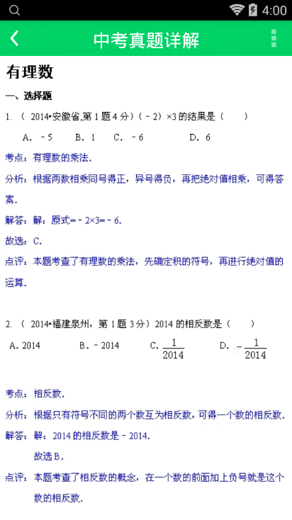 中考真题详解为考生提供最新的疑难考点,软件内含历届中考真题,用户可以随时随地的练习,非常的方便实用,每一道难题都会有相应的知识难点,都会详尽的展示给用户,让用户更好的掌握这个知识点。