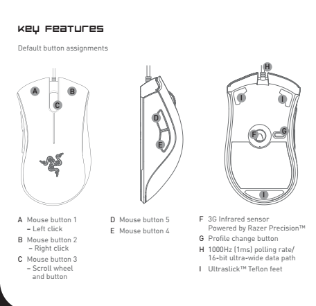 Razer DeathAdder 2000 配备 2 个速射高触感 Hyperesponse 超快响应鼠标按键。