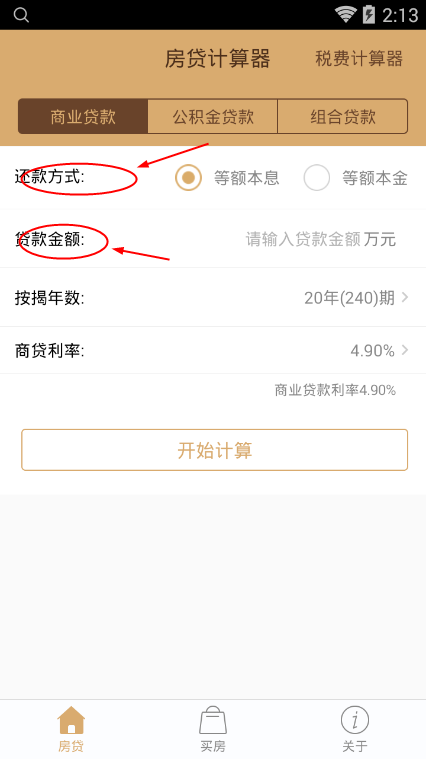2.支持业贷款、公积金贷款、混合(组合)贷款三种贷款类型;