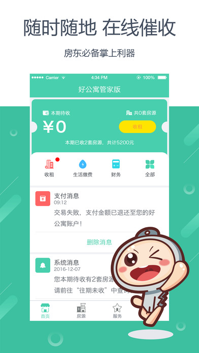 好公寓app苹果版是一款非常实用的手机租房应用软件,好公寓app苹果版为用户提供最好的租房服务,具备一些实用的租房功能,像房源管理、租客管理、财务管理、管家提醒、在线收租等,有需要的用户可以下载。