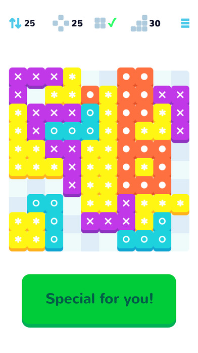 游戏以俄罗斯方块为基础玩法,玩家要利用屏幕下方给予你的三个砖块,去组合出关卡所要求的图形,要求图形的样子在屏幕正上方,图形边上的数字则代表了需要组合的次数,只有达到这个次数后才能进行下一个关卡。游戏中的砖块不但造型各异,而且颜色也是多种多样的,注意这些颜色并不能混搭在一起,只要相同的颜色拼合成功后才算合格。
