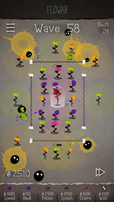 游戏中玩家需要先升级能够攻击的花,抵挡敌人进攻,然后需要升级治愈的花,保证攻击花的生存能力,游戏越到后期,能够使用的花种类越多,玩家就可以更好的进行防守。