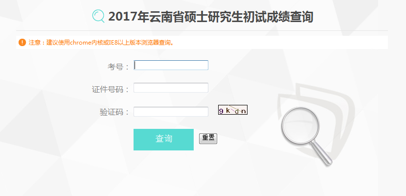 云南省2017年全国硕士研究生招生考试初试成绩2月17日正式公布