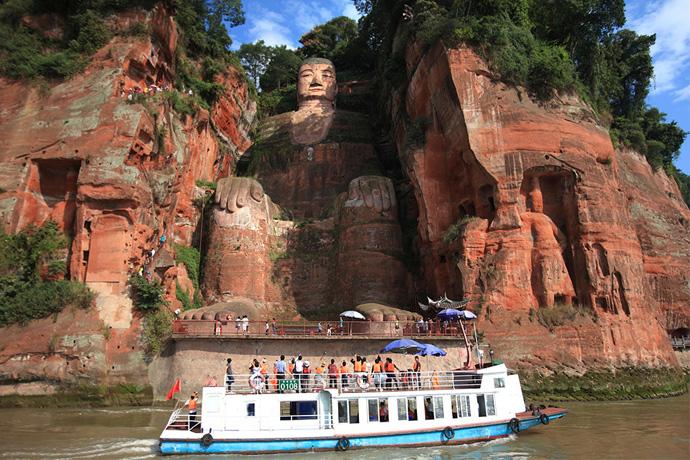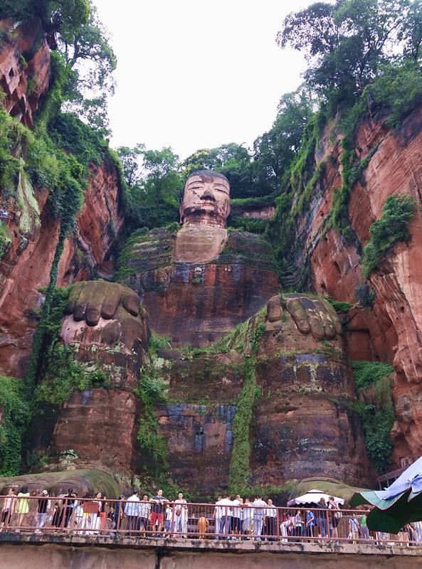 佛是一座山,山是一座佛。越往下走人流越疏散,到了佛脚边的广场就实现开阔了,这里可以观赏大佛的全景。当然你也可以选择坐船游览,更为直观。
