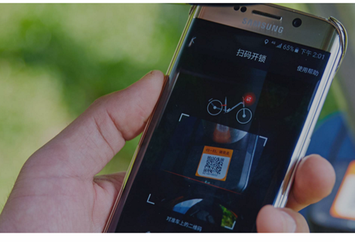 5、扫车身上的二维码,就会远程开锁。(车身有两处有二维码,一处是车龙头上面,一处是锁上面)