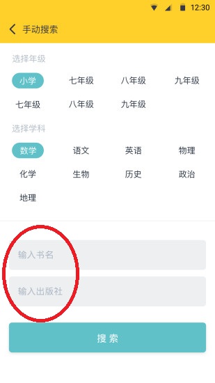 如果找不到条形码,可以尝试手动搜索,按照年纪学科输入书名和所属出版社即可