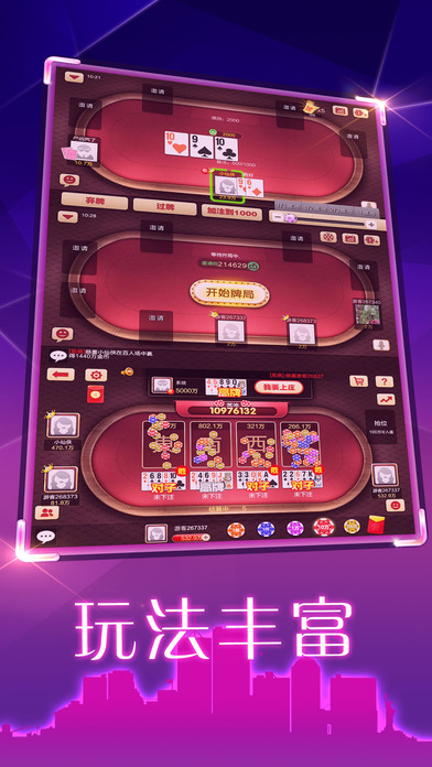 游戏场,各种盲注的房间,爱打多大就打多大;百人场,多人同时在线齐嗨,看谁是最大赢家;约局私人定制场,只和好友对弈或与高手约战,看谁更技高一筹。