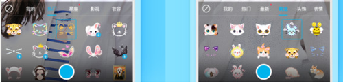 2、将摄像头对准自己,这个时候就可以选择各式各样的动态贴纸为你添加色彩了~