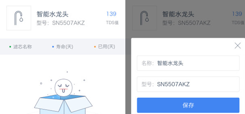 3、以智能水龙头为例,选择滤芯的名称和寿命(按天计算/按流量L计算)、已经使用的天数