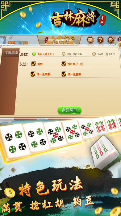 吉林麻将是一种广泛流行于吉林省吉林市地区的大众打法麻将游戏,在推倒胡规则基础上增加旋风杠、喜杠等本地特色玩法。