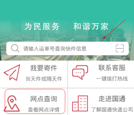 2、点击网点查询,就能为你搜索出附近周边的国通快递网点,更加方便的收寄快递。