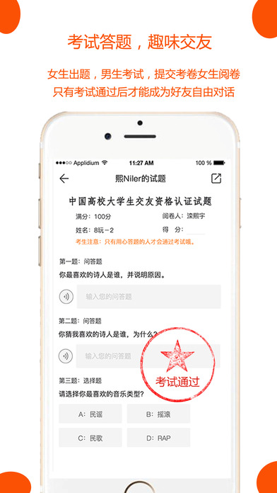 在这个浮躁的时代,Summer希望每个大学生都可以真诚的去交友,而不是快餐式的yue炮,在Summer的世界里面,每一个同学都需要自己设置一份个性化的试题,只有对方提交了Ta的答案,并且得到出题人的通过以后,双方才能成为好友直接对话,我们希望用这种趣味化的出题-答题-批阅试题的形式,带大家回归到初中或者高中时代,用心的去出每一个考题,真诚的去回答每一个试题,只有真正的走心,才能成为好朋友或者恋人。