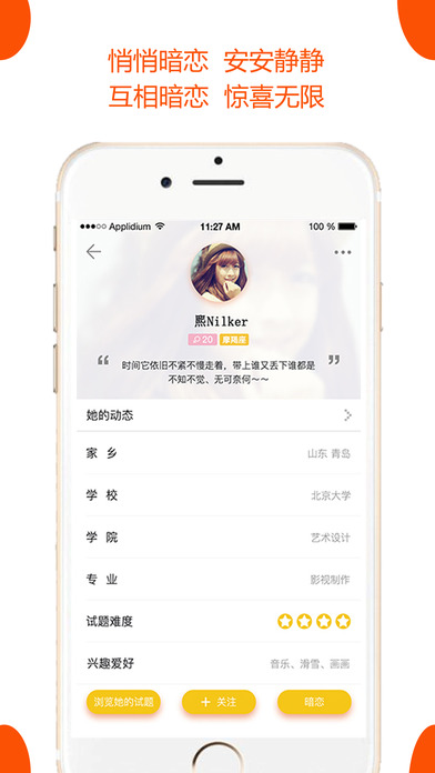 【悄悄暗恋,安安静静,互相暗恋,惊喜无限】:你可以悄悄的暗恋一个人,如果有一天,TA也暗恋了你,那么惊喜就来了,双方自动成为好友,缘分就是这样神奇。
