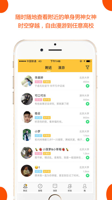 【跨越时空,自由漫游】:在Summer的世界里面,每个用户都可以自由漫游到任意一所高校,查看那个校园里面的单身男神和女神,不怕本校男女比例N:1,天涯何处无芳草,自由漫游,无需只在本校找。