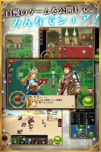 《BitGame Maker》是一款日本千叶县公认的手机游戏,游戏中玩家会创作一款RPG游戏,玩家将会在手机上自己设定游戏的内容,角色道具等合计过千种要素给玩家使用来创作,玩家们将可以使用自己的游戏世界和其他游戏世界比较。