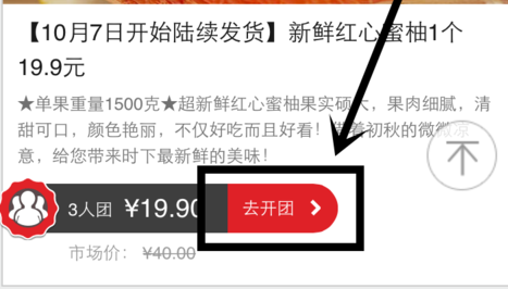 5、然后会弹出该水果具体开团详情界面,我们看到开团的价格和单买价格,这时点击下3人开团,