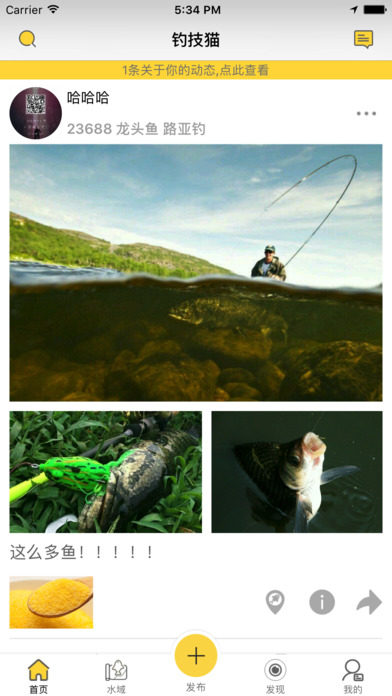 水域查询:覆盖全国581个城市,15000余个水域,每个水域都收集了该水域的所有渔获记录,用户可以非常直观简便的查看到该水域中具体的钓点、鱼种、天气等情况。通过关注该水域,还可以及时掌握到该水域的渔获战报和排名情况。