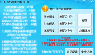 这是一款可以帮助大家更好的使用游戏中的一些技巧的工具,有了这款软件大家就能一键大跳,压枪等都是小意思!让大家可以更加轻松的吃鸡!