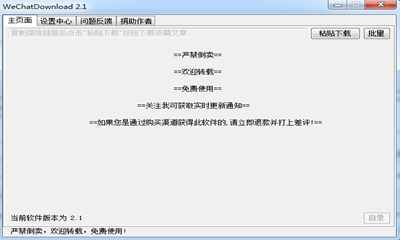 微信公众号文章批量下载利器是一款专门为大家提供文章快速下载快速转发的软件,通过这里大家可以将文章的链接粘贴后快速下载内容,让大家能够更方便的完成公众号文章的发布等。