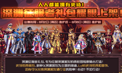 商城限时上架深渊征服者礼包售价是21800点券。宠物属性全部一致。光环装扮深渊神器之光,物理魔法+20,独立25,四维30附带个人传送功能,一共有三种颜色紫色黄色橙色供玩家选择。
