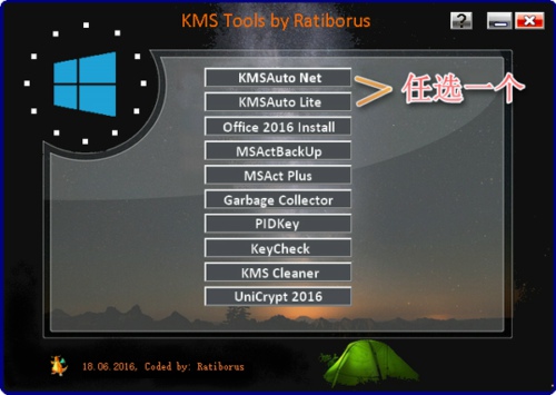 1、运行KMSTools.exe,在 KMSAuto Net 和 KMSAuto LIte 中任意选择一个运行