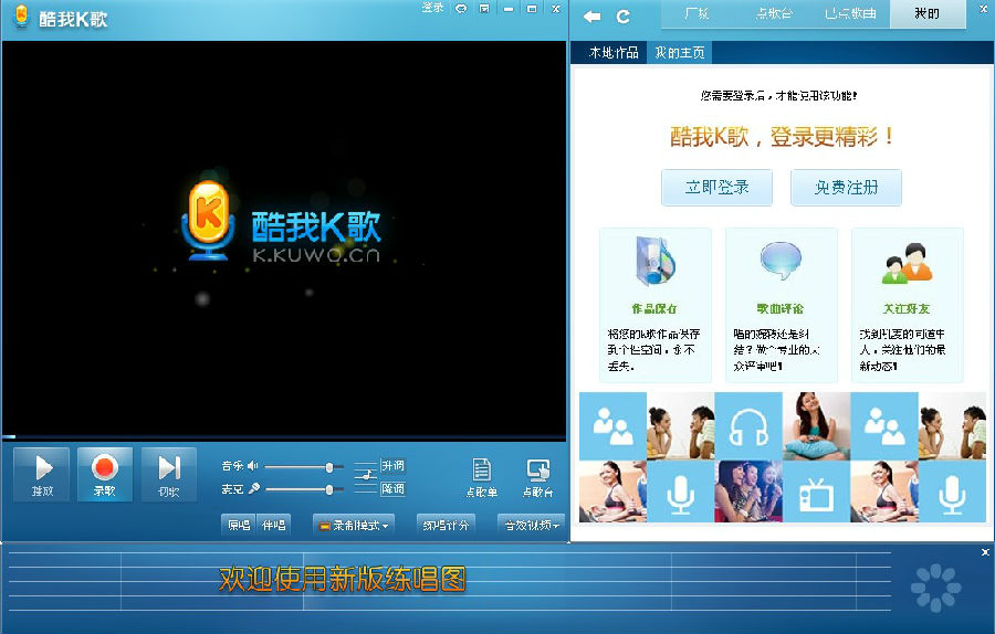 独有的多媒体处理技术,收录各大KTV权威点唱榜单,新歌老歌一网 打尽。录制你自己的mp3和MV,和你的朋友分享你的歌声和快乐吧。